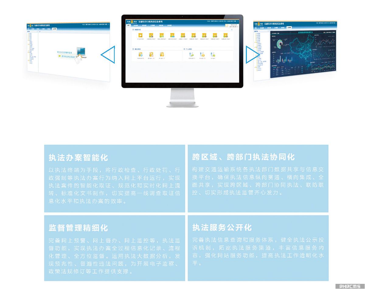 The Comprehensive Management Information System for Transportation Administrative Law Enforcement is a key informatization construction project proposed in the "13th Five-Year Plan for the Development of Transportation Informatization." The system design conforms to the standards of the "Construction Guidelines for the Comprehensive Management Information System for Transportation Administrative Law Enforcement" issued by the General Office of the Ministry of Transport. It focuses on law enforcement case handling, law enforcement team building, law enforcement supervision, and law enforcement services, constructing a comprehensive transportation law enforcement informatization system characterized by "vertical integration, horizontal integration, information sharing, business collaboration, and intelligent convenience." The Yiwei Comprehensive Management Information System for Transportation Administrative Law Enforcement covers the law enforcement operations of six major functional departments: highway administration, road transport administration, waterway transport administration, waterway administration, port administration, and maritime administration. It improves the informatization level of comprehensive administrative law enforcement departments, addresses the previous problems of low efficiency, numerous procedures, long processing times, and unclear law enforcement boundaries, enhances the decision-making support capabilities of law enforcement management departments, strengthens the efficiency of government management services, and achieves the goals of standardized law enforcement team management, intelligent law enforcement case handling, cross-regional and cross-departmental law enforcement collaboration, refined supervision and management, and high-quality law enforcement services.